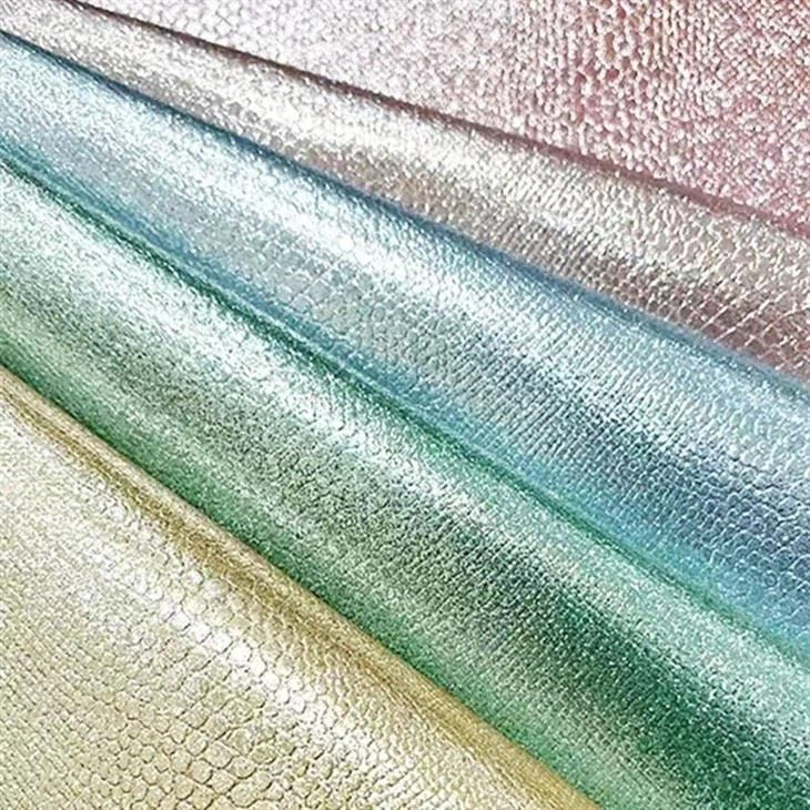 - Klasické farebné kovové kovové zlaté popraskané hadí textúra lesklé iskrivé PU syntetické faux kožené rolky pre domácich majstrov výroby kabeliek