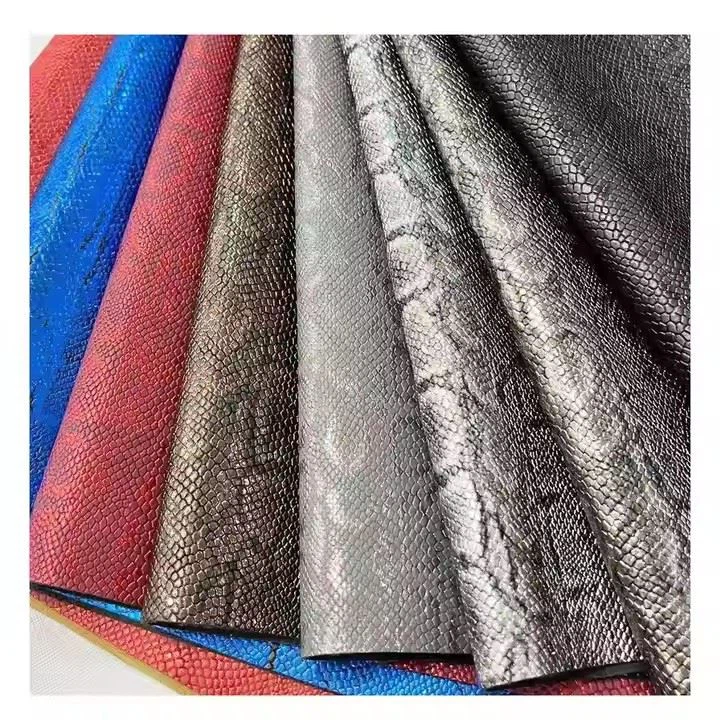- K dispozícii v rôznych farbách a povrchových úpravách, môžete kombinovať a porovnávať, aby ste vytvorili skutočne jedinečný a personalizovaný kúsok. Či už uprednostňujete klasický čierny alebo odvážny kovový odtieň, pre každého z našich nových príletov je niečo pre každého z našich nových príchodov kovová hadová koža tlačená Shinny Finishing Syntetic Pu Leather Collection.