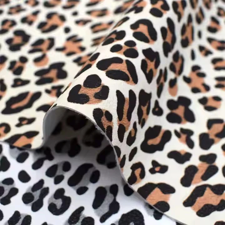 - Tlačený leopardský dizajn PU Leather Vinyl Tkanina je trendový a štýlový materiál, ktorý je ideálny na výrobu topánok, obuvi a tašiek. Živý a pútavý dizajn leopardej tlačenej tlače dodáva každej položke, na ktorú sa používa, dotyk divočiny a vzrušenia, vďaka čomu je ideálny pre každého, kto chce vyniknúť z davu.