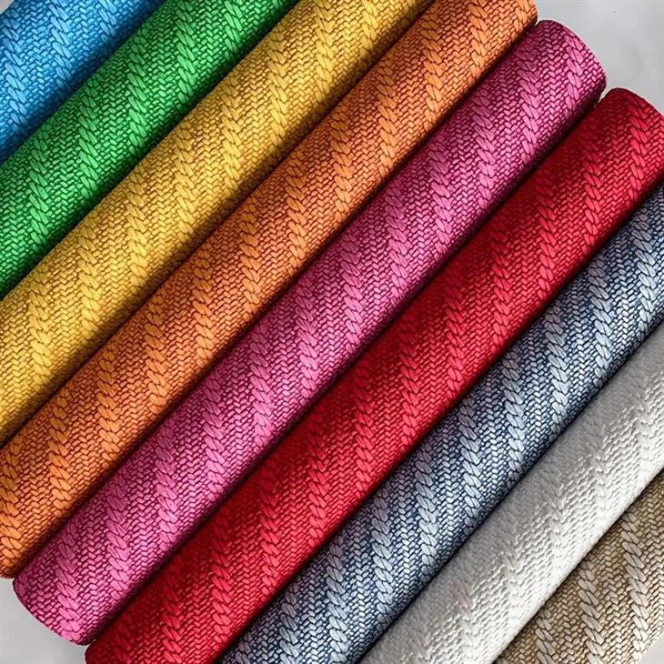 - Tkanina Faux Syntetická kožená vyrazená PU je fantastická voľba pre každého, kto chce pridať dotyk štýlu a trvanlivosti k svojim remeselným projektom. Vďaka svojej jedinečnej textúre, pevnosti a vodotesných vlastnostiach tento materiál určite zapôsobí. Či už ste skúsený remeselník alebo práve začínate, tento materiál je skvelou voľbou pre všetky vaše potreby na tvorbu. Tak prečo čakať? Začnite tvoriť s tkaným vzorom faux syntetickou koženou vyrazenou PU ešte dnes a uvidíte rozdiel, ktorý môže vo vašich projektoch dosiahnuť.