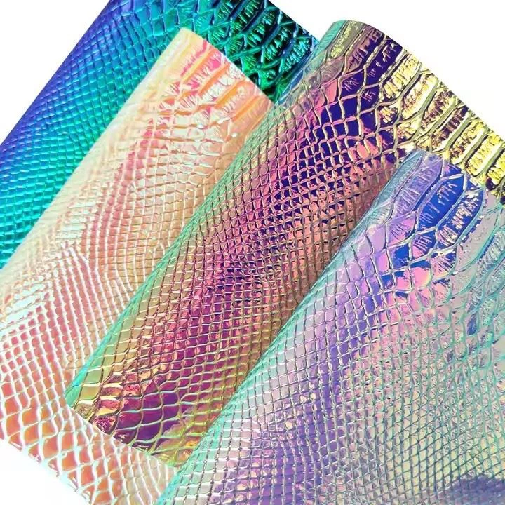 - Laserová faux kožená kožená rolka zelená hadová tlačová zrna Pu syntetická kožená holografická reliéfna vinylová tkanina je všestranný a moderný materiál, ktorý sa dá použiť na rôzne kreatívne projekty. Vďaka svojmu jedinečnému hadiu tlačeného zrna a holografickým vyrazeným povrchom dodáva do akejkoľvek položky príslušenstva alebo dekorácie nádych sofistikovanosti a štýlu.